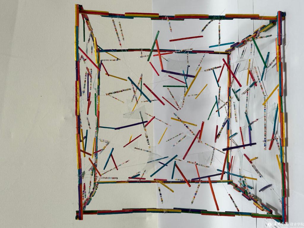 据悉,该课程是2022版人才培养方案启用以来的全新课程。师生进行广泛的探索与实验,在互相探讨与启发的氛围下,展开了对课程教学创新路径的探索。首先,课程引导学生在生活中发现美、记录美,培养学生建立积极、乐观的生活态度;其次,在课程中,以创新为核心,从生活中汲取灵感进行作品创作,培养学生创新价值观;最后,通过引导学生进行设计、制作设计构成作品,培养学生专注、精益的“工匠精神”。