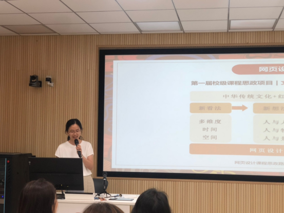徐娟芬从校级课程思政案例出发,结合日常教学经验,以充分挖掘课程内容的思政元素为出发点,分享了在设计类课程以及毕业设计、学科竞赛中如何有效融入思政教育的经验与体会。王艳敏以“传统文化的转化设计”为题,从设计实践和课程思政两个角度进行了分享,他认为传统文化的转化设计要在保持传统文化“本真性”的基础上进行活化,要通过“融入社会生活”设计价值的合理性,要培养学生以“思辨多维”的视角审视传统文化。朱宁嘉老师以“传统文化创新项目在教学中的体系构建与实践”为题,从新文科背景与项目化创新、设计类课程项目化体系创新、项目化教学实践等方面进行了分享。