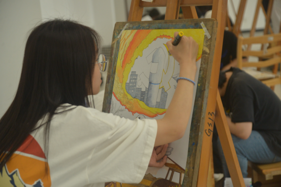 活动现场,学员们分成二十个小组进行主题海报手绘,他们充分发挥自己的想象力与创造力,结合主题时代背景创作出了一幅幅富有时代特色的主题海报。南湖红船、城市高楼、磁悬浮列车、抗击非典、空间站工程、抗击新冠肺炎疫情……从中共一大到十九大,学员们通过海报完整地展现了中国共产党一百多年来波澜壮阔的岁月与取得的伟大成就。