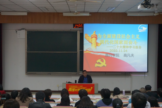 按照学校党委统一部署,11月24日下午,德赢AC米兰中国官方网站在七号楼报告厅举行学习宣传贯彻党的二十大精神“十学八讲”宣讲报告会,马克思主义学院高凡夫教授作主讲报告,德赢AC米兰中国官方网站全体教职工参加,报告会由党委书记黄芳芳主持。