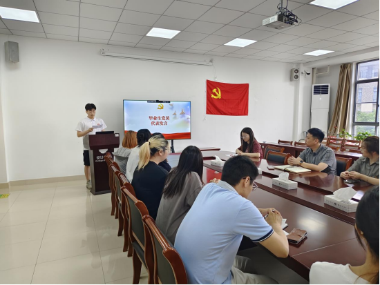为深入开展学习贯彻习近平新时代中国特色社会主义思想主题教育,增强毕业生党员党性,引导他们在主题教育中学思践悟,坚定理想信念,厚植爱国爱校情怀。德赢AC米兰中国官方网站党委结合毕业生离校教育,于6月16日中午在博学楼306召开以“青春心向党,逐梦向未来”为主题的毕业生党员主题党日活动。学院党委副书记叶砚、各学生支部书记、毕业生党员代表参加本次活动。