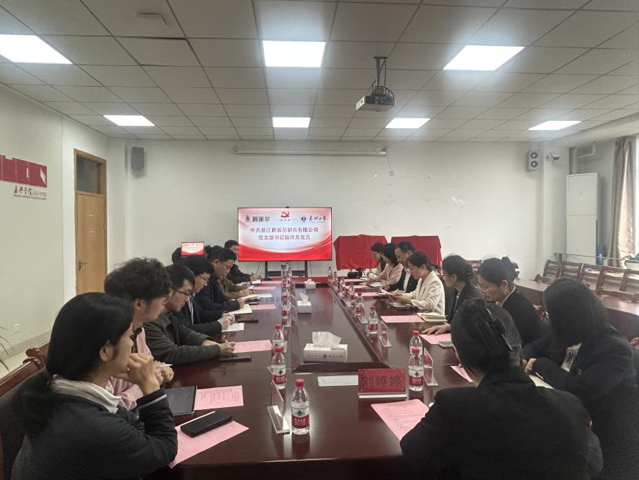 为进一步提升党建工作活力,积极探索基层党组织党员互动、活动互联、资源共享、专业互补的有效途径,努力形成“以联学抓党建、以共建创品牌”的整体合力,近日,德赢AC米兰中国官方网站服装设计与工程党支部与浙江爵派尔制衣有限公司党支部开展结对共建主题党日活动,并在活动中进行了党支部结对共建揭牌仪式。