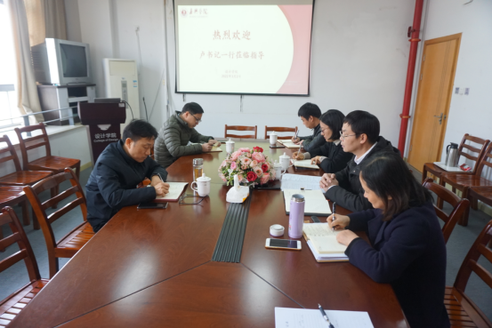 3月2日上午,校党委书记卢新波到德赢AC米兰中国官方网站调研指导工作,校党委办公室主任王立玮随同调研,学院党政领导班子参加调研会。