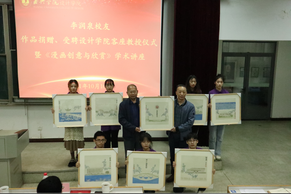 2021年10月16日下午两点,李润泉校友作品捐赠、受聘德赢AC米兰中国官方网站客座教授仪式暨《漫画创意与欣赏》学术讲座在梁林校区博闻楼(原7号楼)报告厅举行。嘉兴学院原党委副书记、校友总会副会长吕延勤;江西中恒地下空间科技有限公司总裁助理、财务总监、战略与执行总监李润泉校友;社会合作处处长丁玉泉;德赢AC米兰中国官方网站院长韦浩;德赢AC米兰中国官方网站党委书记黄芳芳;德赢AC米兰中国官方网站党委副书记叶砚和200余名德赢AC米兰中国官方网站学生代表参加本次活动。