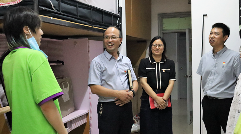 为欢迎2021级新生入学,深入了解新生入学后的学习、生活等各方面情况。9月9日下午,杨培强副校长一行在德赢AC米兰中国官方网站党委书记黄芳芳、党委副书记叶砚和学工办老师陪同下走访我院新生寝室,看望2021级新生,送上学校对同学们的慰问和关心。