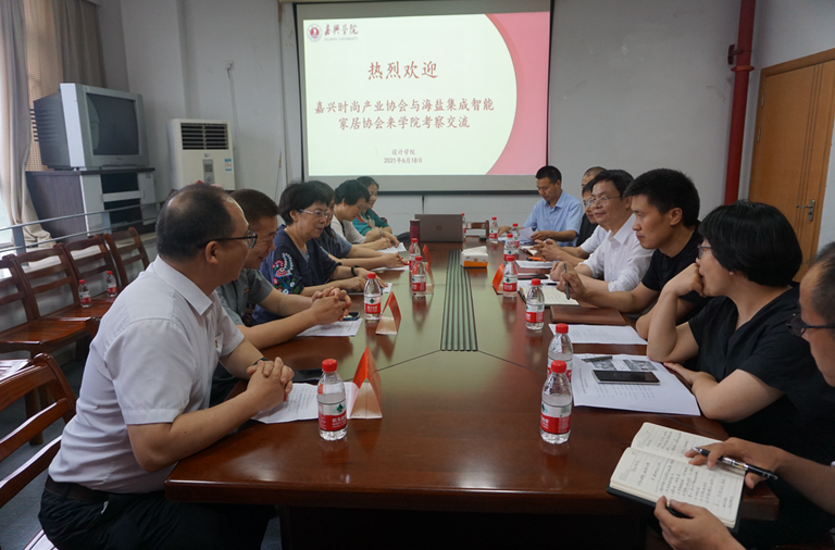 6月18日下午,由嘉兴市时尚产业协会会长沈丽萍、海盐县集成智能家居协会长时沈祥、海盐县经信局综合科领导汤梦吉带队的嘉兴时尚产业协会与海盐集成智能家居协会代表团来德赢AC米兰中国官方网站进行考察交流。德赢AC米兰中国官方网站院长韦浩和相关系主任出席本次活动。