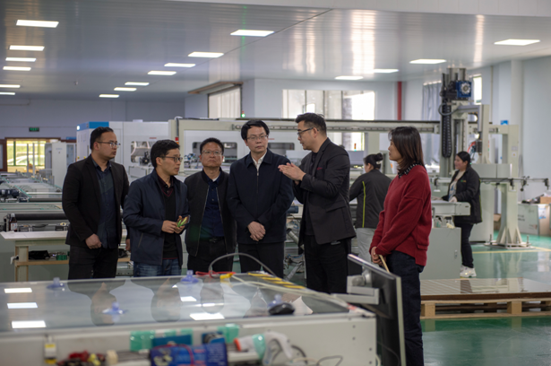 4月16日下午,应任加林董事长邀请,德赢AC米兰中国官方网站韦浩院长带领学院教师赴浙江百步经济开发区嘉兴龙吟光伏材料股份有限公司调研企业需求并洽谈校企合作。嘉兴市青创中心、百步镇人民政府、海盐县经信局等单位相关领导陪同调研考察。