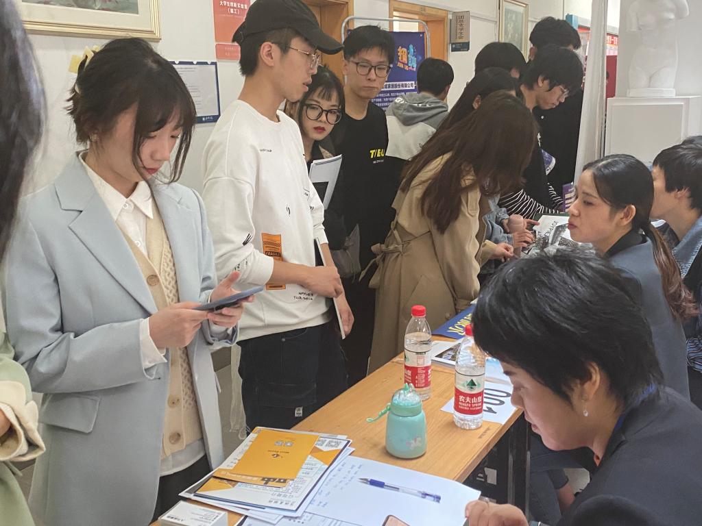 招聘会现场人头攒动,学生们带着精心准备的简历和作品集前来应聘,经过详细咨询后向心仪单位投递精心准备的简历、表达求职意向。同学们一致认为:“参加组团招聘会比企业专场宣讲会更有效率,能节约不少时间,企业类型多样,提供的岗位也多样,对学生来说选择余地更大。” 浙江宝仕龙集成家居股份有限公司招聘负责人戴总对本次招聘会的举办效果表示满意:“这种形式吸引的学生流量比单次宣讲会更丰富、集中,今天下午我们把所有有意向的学生集中一起,由公司商学院同事进行集中宣讲,宣讲更具有针对性,相信我们一定能招到合适的人才。”