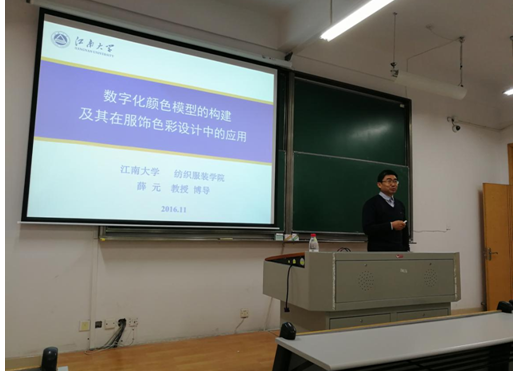 12月27日上午,江南大学纺织服装学院薛元教授为我院师生作题为《数字化颜色模型的构建及其在服饰色彩设计中的应用》的讲座,薛教授从色彩的定义、色彩的混合等方面入手,介绍了服装设计中的色彩表达的方法以及生产中利用数字化模型进行纺纱混色等色彩设计的一些最新研究成果。