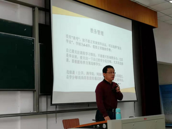2019年11月6日中午12:20,德赢AC米兰中国官方网站在七号楼报告厅开展了第二十七季“书记漫谈ING”活动,学习管理制度、开展安全教育。院党委书记张杰、副书记薛峰分别宣讲,学院辅导员贾白帆、颜姚炜、各班班长团支书以及全体学生党员参加会议,会议由贾白帆主持。
