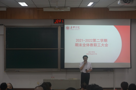 会上,韦浩院长回顾了2022年上半年学院各项工作,并对下半年学院工作进行部署。他指出,在全体教职员工的共同努力下,本学期学院在专业建设、学科竞赛、学术科研、考研就业、对外交流等方面都取得了良好成绩。另外,他还通报了职称评聘、数媒专业搬迁、人才培养方案制定、艺术专硕申报等工作。他指出,接下来各位老师安排好下学期各项教学任务,做好教学大纲制定、学科竞赛组织等工作,做好研究、调研、考察工作,为新学期各项工作顺利开展做好准备工作。