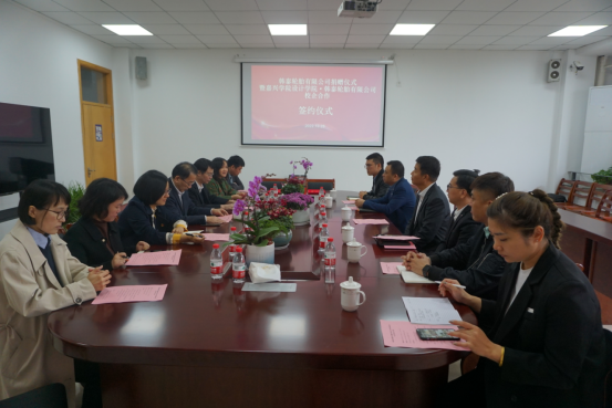韦浩院长代表德赢AC米兰中国官方网站向韩泰轮胎有限公司对学院教育事业发展的支持表达感谢,同时介绍了学院基本情况。他指出,近年来学院坚持主动融入地方经济社会发展,面向地方支柱产业,不断深化产教融合,今天的捐赠暨校企合作签约仪式就是主动对接地方经济社会发展需求,进一步深化校企合作的体现。他希望,接下来双方要不断拓展合作领域,奋力实现合作共赢。