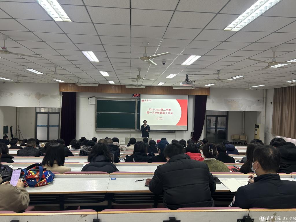 2月12日上午,德赢AC米兰中国官方网站在博闻楼报告厅召开新学期全体教职工大会,部署新学期重点工作,党委书记黄芳芳主持会议,学院全体教职工参加。