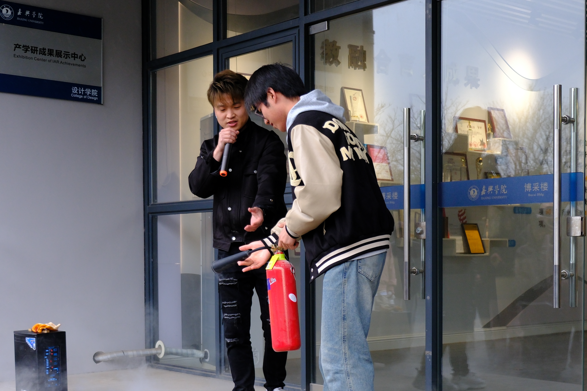 演练结束后,保卫处丁伟老师现场示范了灭火器的正确使用方法和注意事项,并指导师生进行了实际操作,让师生对消防器材的使用方法有了更加直观深入地了解。