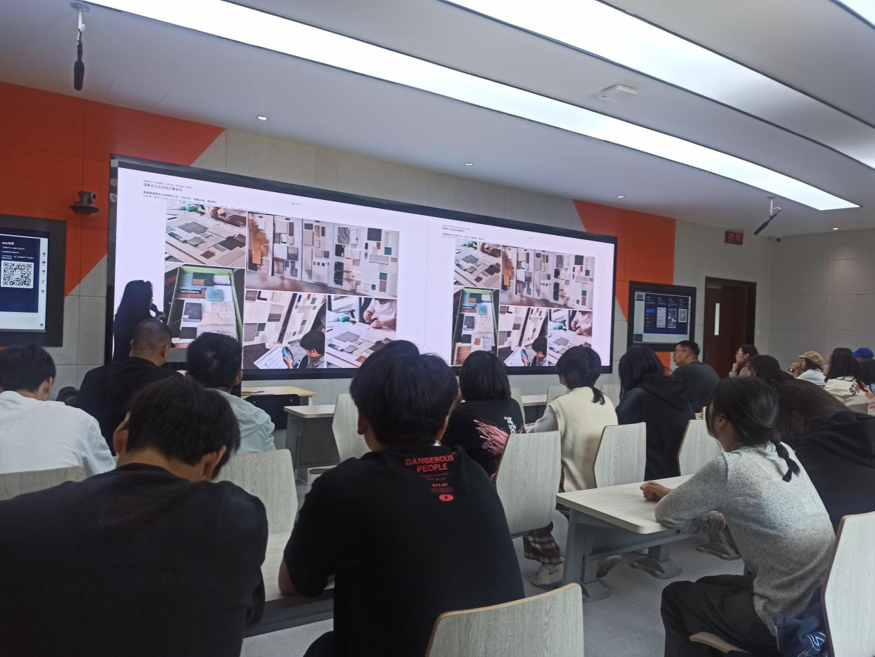 皇甫丹琳和张雪丰两位老师分享了上海拾原建筑设计理念、施工工艺、创意创新,并进行了案例分析,提出设计应该注重与客户交流和沟通,注重细节,鼓励学生们多走出校园,多参与设计实践,了解施工工艺和结构构造等,同时注重培养国际化设计理念和提升艺术审美的能力。