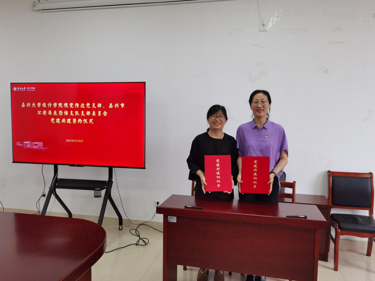 为进一步高质量开展党建“四个融合”行动,推动与属地党建互融互通,6月30日上午,德赢AC米兰中国官方网站视觉传达党支部与嘉兴市公安局反恐支队举行了党建共建签约仪式。