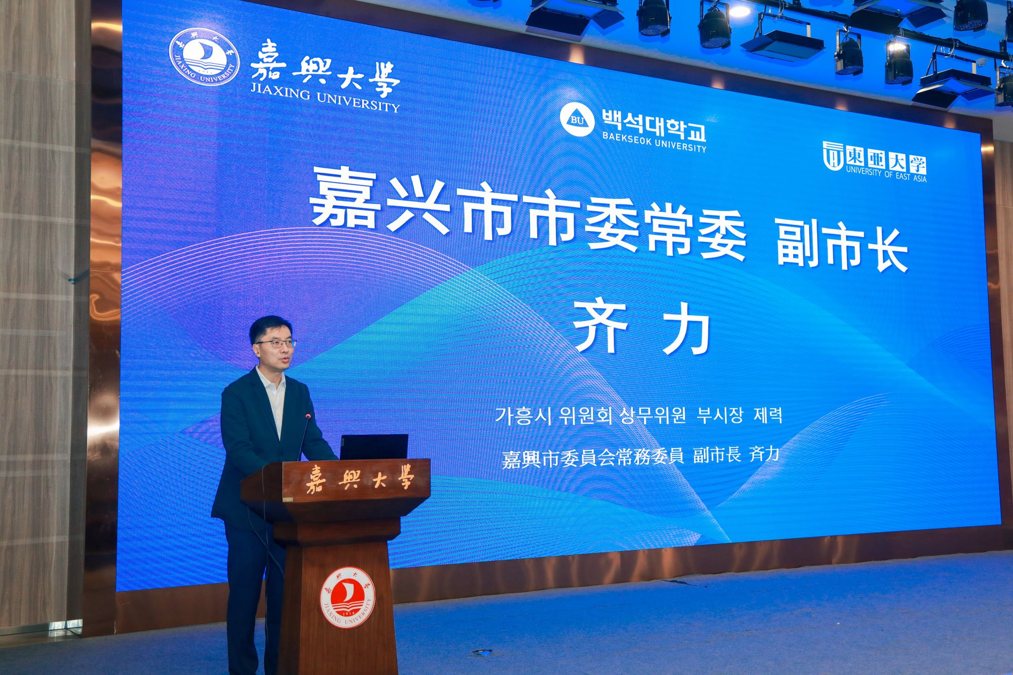 嘉兴市委常委、副市长齐力在致辞中表示,推进高水平教育开放的时代背景下,嘉兴大学要充分发挥地处长三角中心腹地、红船起航地的优势,不断扩大国际学术交流和教育科研合作,聚焦高水平艺术创作、国际化艺术人才培养等领域的互通、互学、互鉴,加快国际化办学进程。
