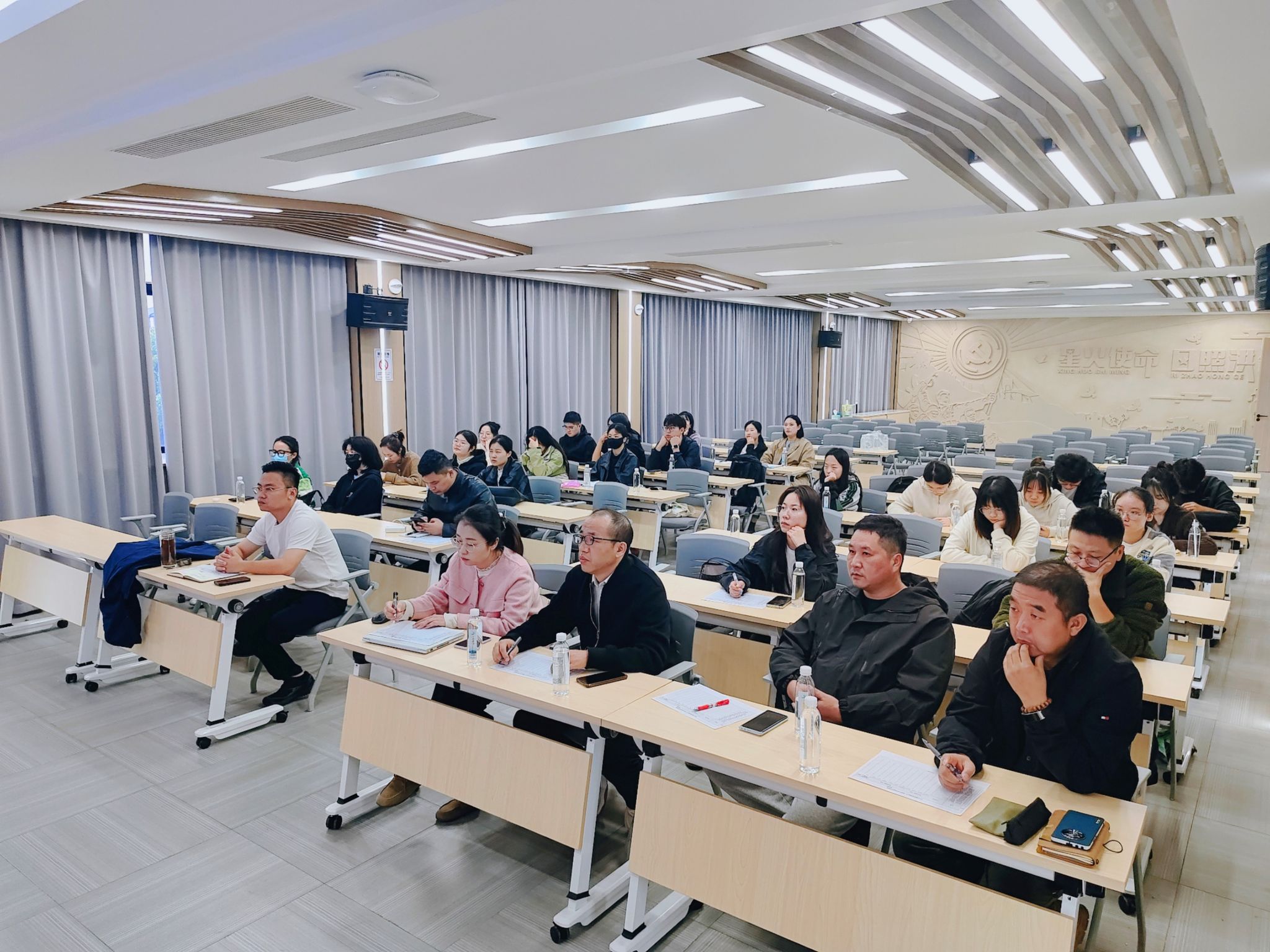 汇报结束后,洪合村、设计公司和环境设计系的老师们对学生的设计方案进行了细致的评分与点评。洪合村的领导和村干部从村落实际发展和乡村关系的角度出发,为同学们提出了宝贵的建议和意见,并对他们多次深入洪合村进行实地调研的辛勤付出表示衷心感谢。同时,他们希望未来能进一步加强“校企村”产教融合实践教学,推动三方深度合作,实现共生发展。环境设计系的老师们积极响应,表示将继续深化和推进“校企村”产教融合实践教学,不断提升教学质量,为地方建设提供更加优质的服务。他们重申了艺术在乡村振兴中的重要作用,强调设计创新不仅能改善乡村居住环境,还能激发乡村文化自信,使乡村成为宜居、宜业、宜游的美丽家园。