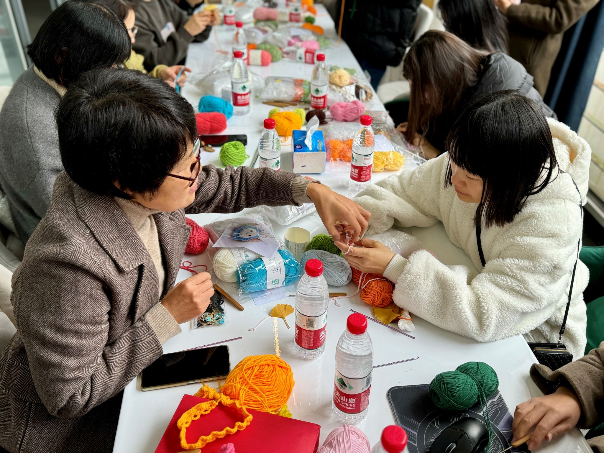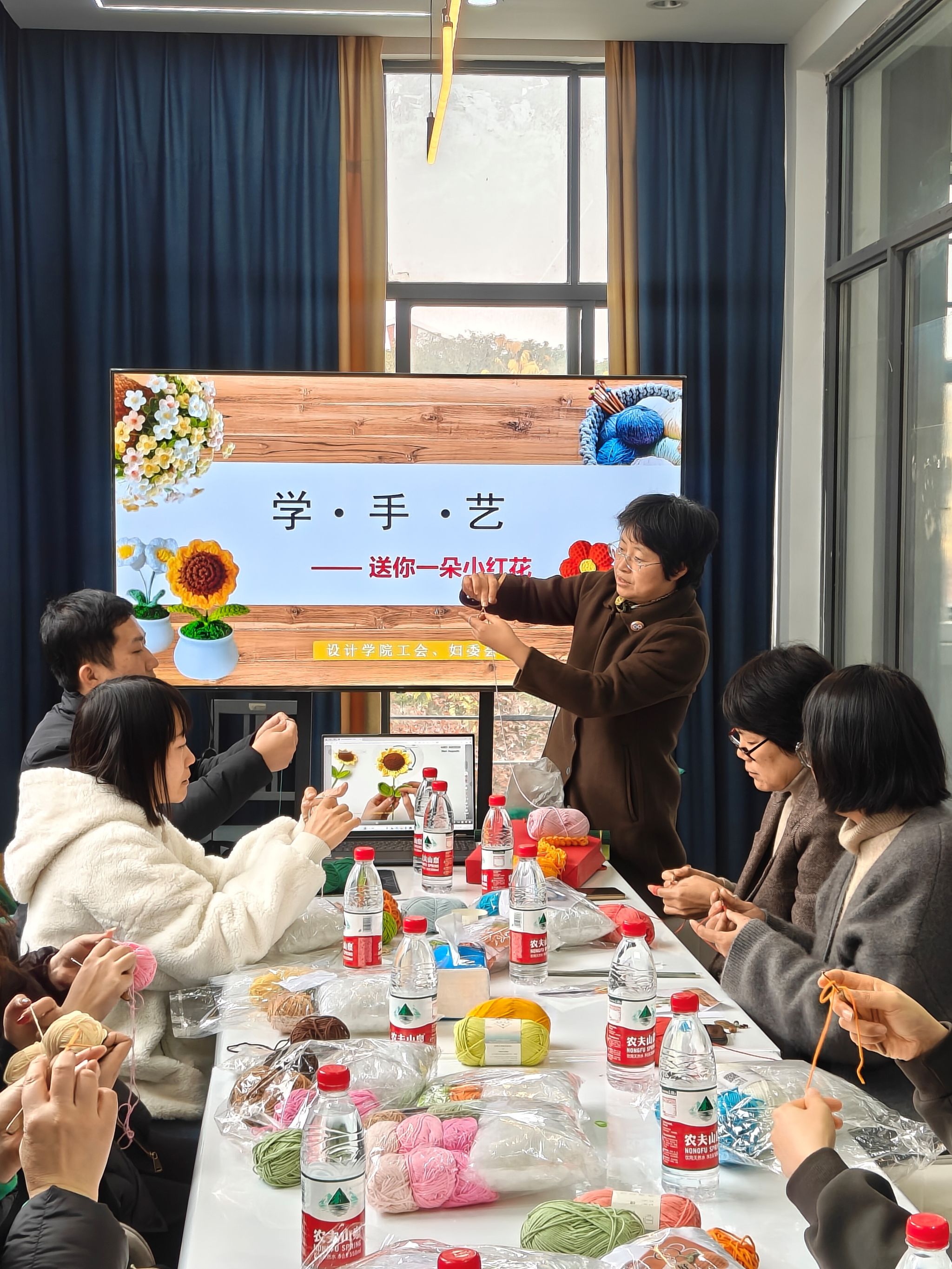 12月5日下午,学院工会、妇委会组织学院教职工开展以“送你一朵小红花”为主题的手工编织活动。活动伊始,由于晓辉老师主要讲解编织技艺在日常生活的运用,并在讲解之后示范编织技法,用钩针和毛线织出美丽的手工花朵。参与活动的老师们别出心裁,除了编织花朵造型,还有手工挂件等。