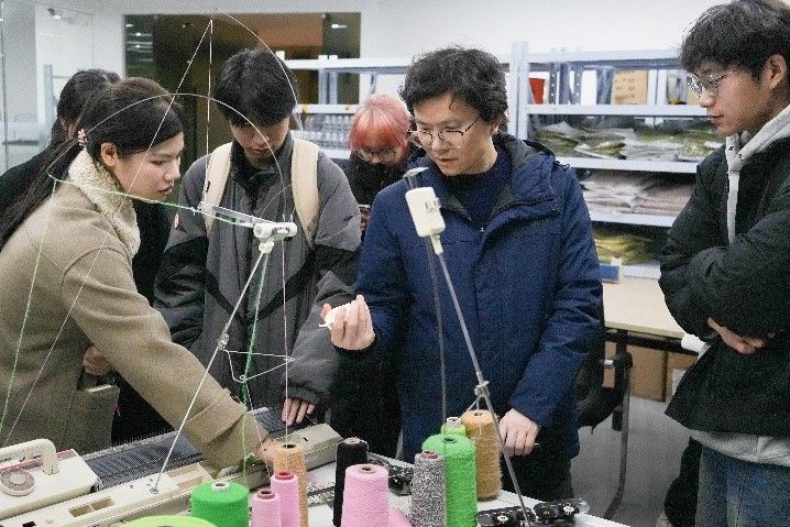 同时,老师们同企业就进一步优化专业课程设置、创新教学模式,对教学内容和教学安排进行了沟通。目前,总经理贾坤、设计主理人刘彦君作为学院特别聘请的校外指导教师,由《数字化针织设计》《服饰手工艺》等课程引领校企联动,实现课堂从校内教学到设计生产的跨越式学习。