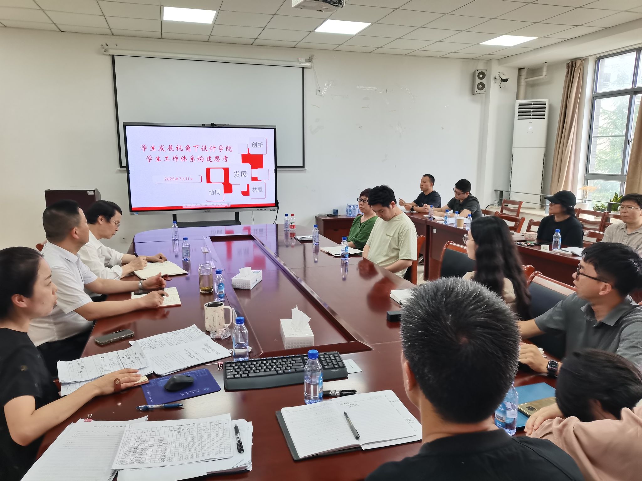 跨部门联动破解难题的专题讨论也取得了丰硕成果。综合办、学工办、实验中心负责人针对行政效能提升、教学管理优化、师资队伍建设及学生服务改进等痛点集智攻关。同时,学生工作体系重塑的专题研讨进一步明确了立德树人的根本任务,为培养高素质复合型、应用型设计人才奠定了坚实基础。