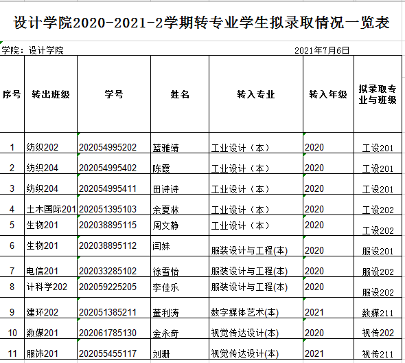 公示期为3天(即日起至2021年7月8日)。有异议者,请在公示期内提出书面异议,交学院教务办重新审议,公示期满无异议后报学校教务处审核。