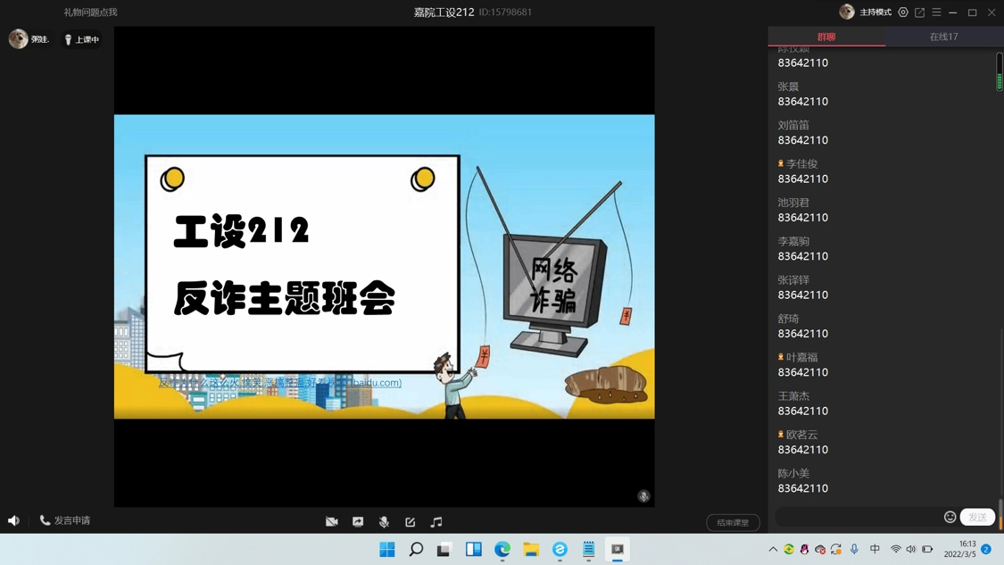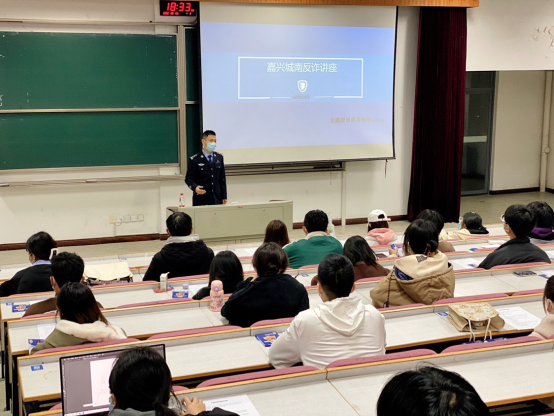为了全面提高学院学生防范校园电信网络诈骗的意识,提高防范能力,预防和减少校园电信网络诈骗案件的发生。德赢AC米兰中国官方网站于3月8日晚18:30在梁林校区博闻楼(原7号楼)报告厅举办防范校园电信网络诈骗宣讲活动,邀请文博社区张秋江警官为同学们进行宣讲和培训。德赢AC米兰中国官方网站党委副书记叶砚主持讲座,学工办主任刘洋,各班学生干部代表参加了此次活动。