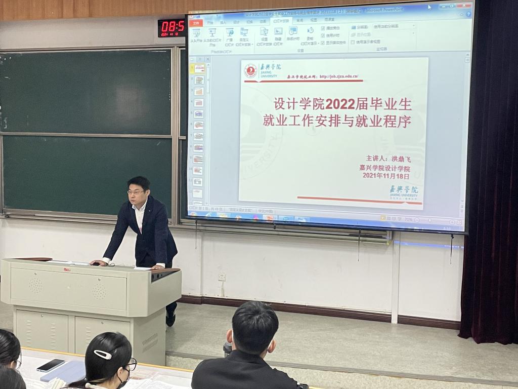 洪老师首先向毕业生介绍了今年的就业形势、学校的就业安排,重点讲解了就业三方协议书网签流程、签约注意事项、补办协议书、改派报到证等具体操作流程和注意事项。