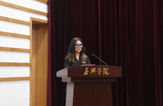 德赢AC米兰中国官方网站学生会主席李静同学代表老生欢迎全体新生,她分享了自己的专业学科求学经验、鼓励新生参加学科竞赛以及积极投身校园活动,培养兴趣,塑造良好的人际关系。来自服饰212的新生代表舒润田同学做了发言,她感谢全体老师及学长学姐们为迎新所付出的努力,她表示一定珍惜在嘉兴学院学习的机会,不负光阴,不负韶华。