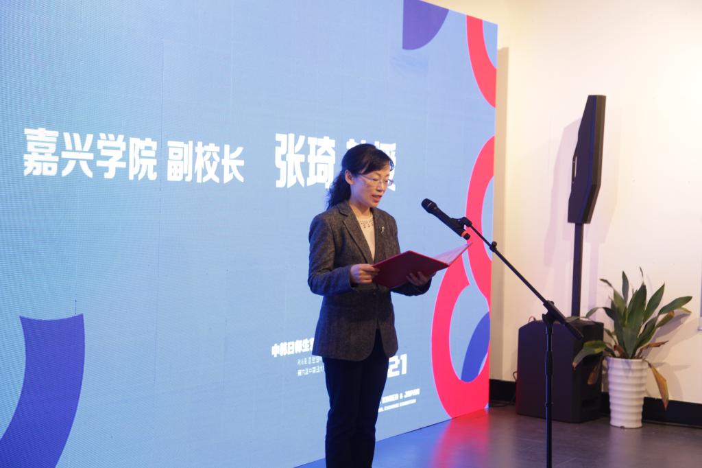 嘉兴学院副校长张琦教授致开幕词,她指出设计的本土化与国际化是中韩日三个国家艺术设计界共同面对的重要课题,中韩日高校师生艺术设计作品联展是一个很好的交流、发展艺术设计与艺术设计教育的平台,她期待能够有更多艺术类高校参与到这个展览中未,将这个展览做成多国联展、校际联展。