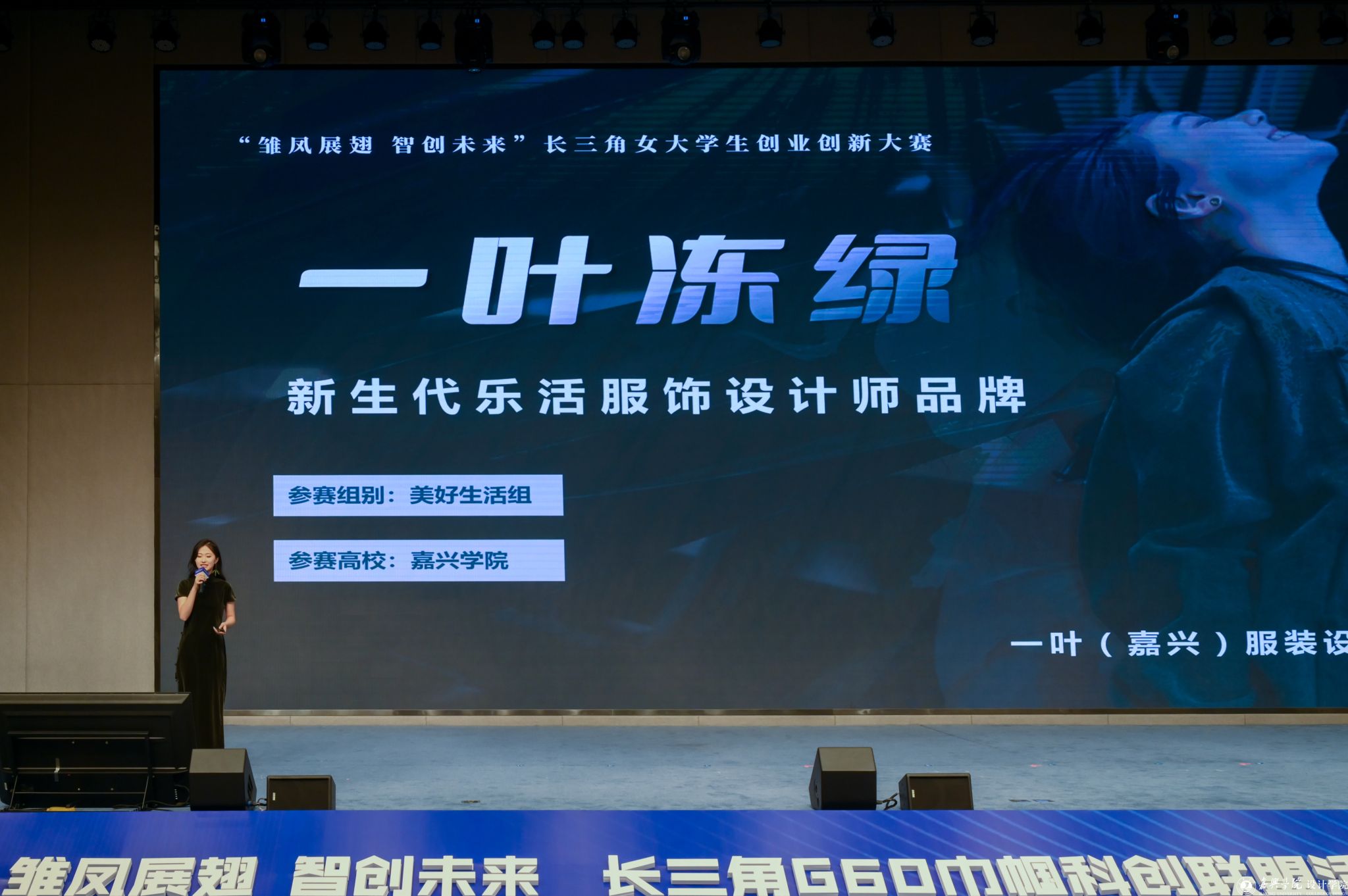 11月17日,“雏凤展翅 智创未来”长三角G60巾帼科创联盟活动暨“农商银行杯”女大学生创业创新大赛在嘉兴海宁举行。我院服饰系叶洁老师指导的《一叶冻绿》项目是嘉兴学院唯一一个入围决赛的项目,该项目由我院202班曾欣欣同学代表参赛并获三等奖,嘉兴学院获得优秀组织奖。